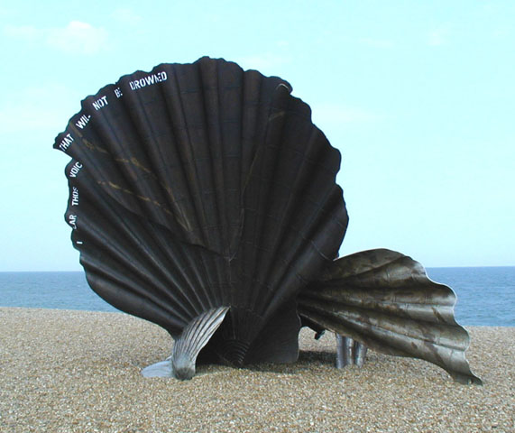 4.1 m stainless steel sculpture by Maggi Hambling on Aldeburgh beach,