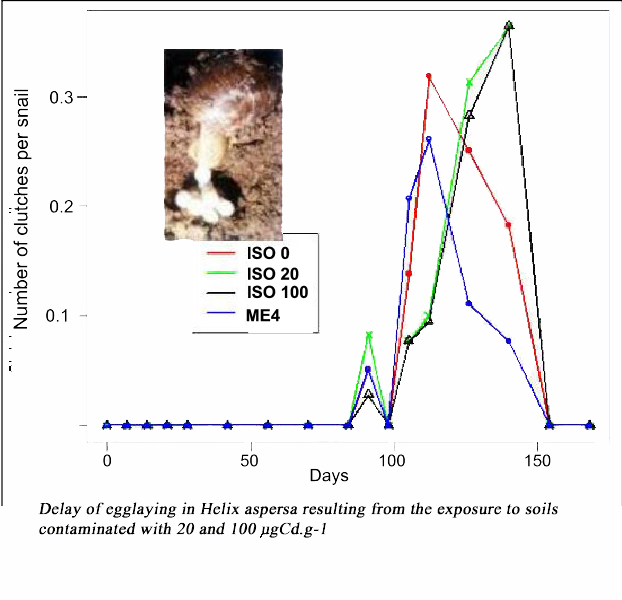 Delay of egglaying in Helix aspersa resulting from the exposure to soils contaminated with 20 and 100 μgCd.g-1