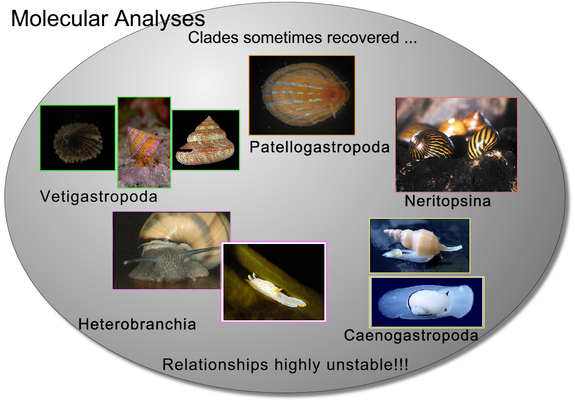 The internal relationships of members of the molluscan class Gastropoda vary significantly across analyses based on morphological and molecular data sets, a phenomenon possibly caused by deep divergences within Gastropoda. These relationships are tested in the first combined phylogenetic analysis for Gastropoda using morphological characters and up to 3.5 Kb of molecular evidence from five loci. Data are obtained from 36 gastropod specimens representing 30 families and 13 outgroup taxa. Phylogenetic analysis via direct optimization using parsimony as optimality criterion is executed for different combinations of parameter sets in a sensitivity analysis framework. The stability and support of the recovered clades is explored and the results of this analysis are compared to those from other molecular and morphological data sets. Although well-supported and stable clades such as Patellogastropoda, Vetigastropoda, Neritopsina, 'Hot Vent Taxa', Apogastropoda, Heterobranchia and Caenogastropoda are recovered, their relationships to each other remain poorly supported and unstable.