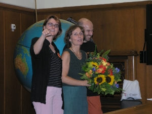 The organisers (left to right) Annette Klussmann-Kolb, Heike Wagele and Michael Schrodl | From left to right : Conxita Avila(Spain), Lucy Turner (U.K.) Paul Katz (U.S.A.) and Fonje Kaligis with Lucas Cervera in the background |