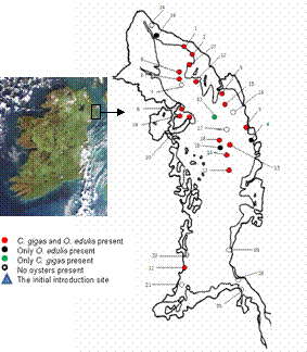 Invasive species are now thought to be one of the worldwide top ten threats to biodiversity. Species are moved outside their natural range either accidentally, such as through expulsion of ballast water or intentionally for agriculture, horticulture and aquaculture. Often introduced species do not flourish in their new environments; however, some species cope well with translocation and colonise their new locality. This is the case for the Japanese oyster (Crassostrea gigas) which has been translocated for aquaculture throughout the world. The accepted wisdom in the late 1960s and early 1970s was that water temperatures in northern Europe would not be high enough for successful breeding and settlement of C. gigas; this was the rationale for its widespread introduction to revitalise oyster production in the UK and elsewhere in Europe. However, by the late 1990s, spawning and settlement of C. gigas, as a result of unusually elevated temperatures, has been reported widely throughout northern Europe; the species is also spreading rapidly in the south Atlantic. The spread of feral C. gigas populations may have detrimental ecological and economic impacts. |