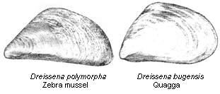 Dreissena bugensis reaches western US The small striped quagga mussel (Dreissena bugensis) was discovered in Lake Mead in January 2007, the first recorded occurrence in the western United States. The mussels have already created havoc in the Great Lakes and Mississippi Basin due to blocked water intake pipes and other physical and biological impacts, and have impacted native Unionid mussels. D. bugensis was introduced from the Ukraine to the Great Lakes in |