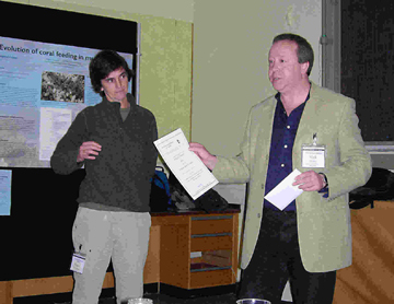 | FIG 1: The President, Professor Mark Davies, presents the Annual Award to Dr Regina da Cunha at the Molluscan Forum in November 2009 at the Natural History Museum. |
